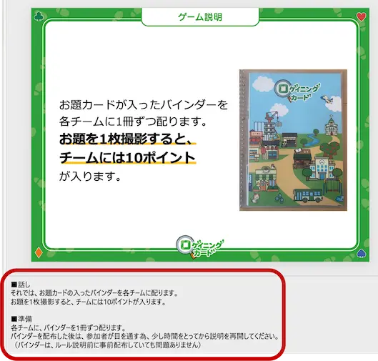 弊社では講師派遣はもちろん、ゲームキット、投影用の資料(pptx)、社内講師用の動画マニュアルをレンタルという形式でもご提供しております。