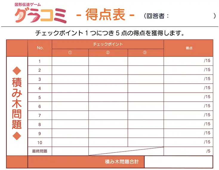 目隠しは使わなくても、指示役が後ろを向いて伝える、などでも実施可能です。