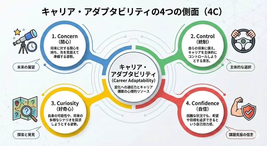 キャリア・アダプタビリティは、以下の4つの側面(4C)から構成されます。