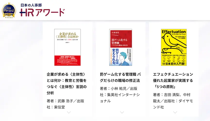最近話題?と書いたのはこちらの本が日本の人事部様主催のHRアワードの書籍部門にノミネートされていることや書店でもよく見かけるからです。