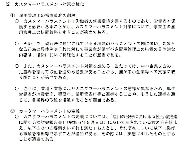 2024年12月、厚生労働省の労働政策審議会は、カスタマーハラスメント(カスハラ)に関する企業の対策を法的義務とする方針を明確にしました。